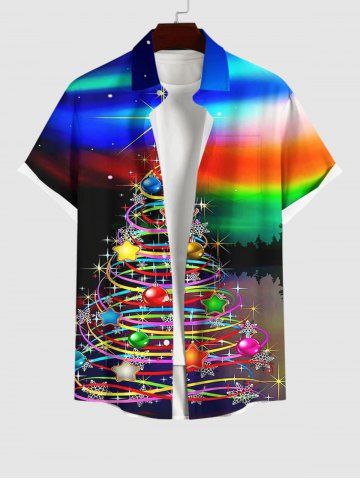 Men's Clothing > Plus Size Christmas Tree Star Ball Snowflake Rainbow Colorblock Print Buttons Pocket Shirt For Men