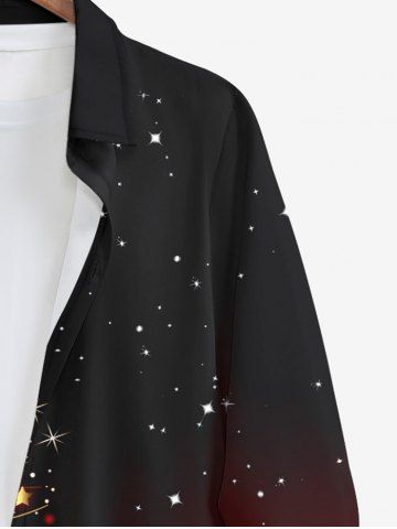 Plus Size Christmas Tree Star Bowknot Glitter 3D Print Buttons Pocket Long Sleeve Shirt For Men - Black - 7xl