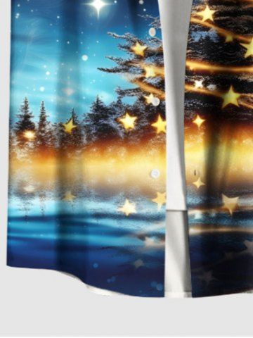 Plus Size Christmas Tree Star Galaxy Print Buttons Pocket Shirt For Men - Midnight Blue - S