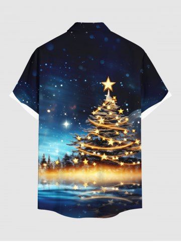 Plus Size Christmas Tree Star Galaxy Print Buttons Pocket Shirt For Men - Midnight Blue - 4xl