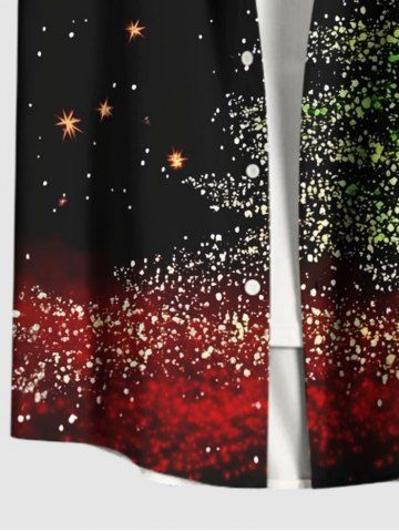 Plus Size Christmas Tree Star Galaxy Sparkling Sequin 3D Print Buttons Pocket Shirt For Men - Black - 3xl