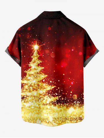 Plus Size Christmas Tree Star Ombre Sparkling Sequin Glitter 3D Print Buttons Pocket Shirt For Men - Red - Xl