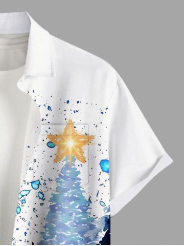 Plus Size Christmas Tree Star Paint Splatter Sparkling Sequin 3D Print Buttons Pocket Shirt For Men - White - 4xl