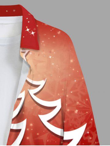 Plus Size Christmas Tree Star Snowflake Glitter 3D Print Buttons Pocket Shirt For Men - Red - 4xl