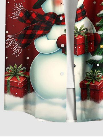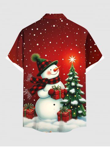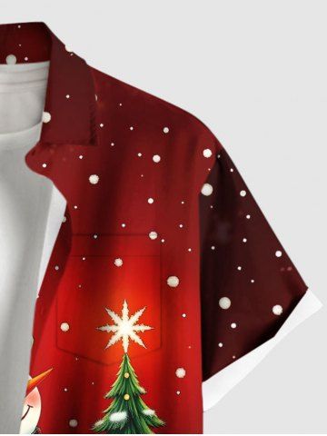 Plus Size Christmas Tree Star Snowman Snowflake Gift Box Print Buttons Pocket Shirt For Men - Red - S