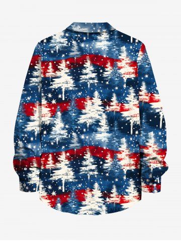 Plus Size Christmas Tree Stars Galaxy Patriotic American Flag Print Button Long Sleeves Shirt For Men - Blue - M