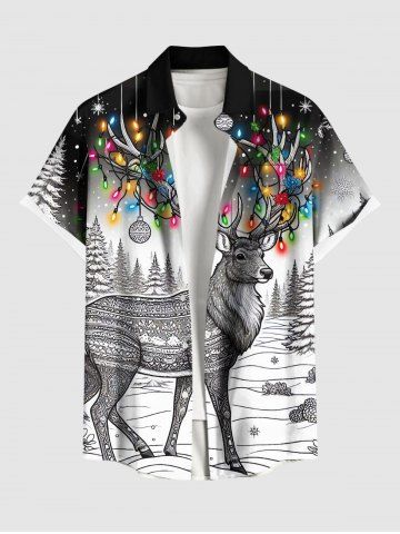Plus Size Colorful Christmas Light Elk Tree Ball Galaxy Print Button Pocket Shirt For Men - Black - 5xl