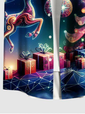 Plus Size Colorful Christmas Tree Elk Gift Ball Galaxy Print Button Pocket Shirt For Men - Multi-a - Xl