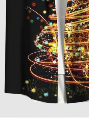 Plus Size Colorful Glitter Sparkling Christmas Tree Print Button Pocket Shirt For Men - Black - L