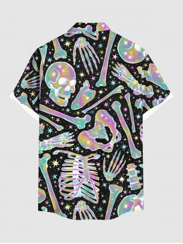 Plus Size Colorful Ombre Skull Skeleton Bone Galaxy Print Halloween Button Pocket Shirt For Men - Black - L