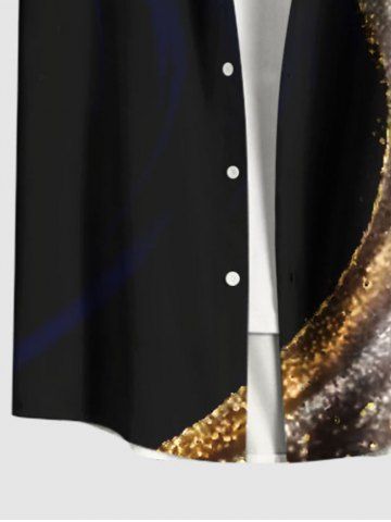 Plus Size Curve Glitter Light Beam Print Christmas Button Pocket Shirt For Men - Black - S
