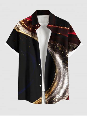Plus Size Curve Glitter Light Beam Print Christmas Button Pocket Shirt For Men - Black - 4xl