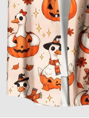 Plus Size Cute Pumpkin Goose Flower Stars Print Halloween Button Pocket Shirt For Men - Light Orange - S