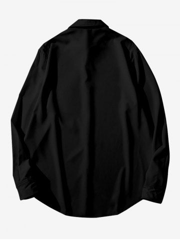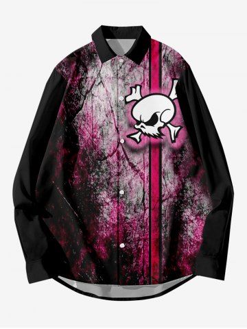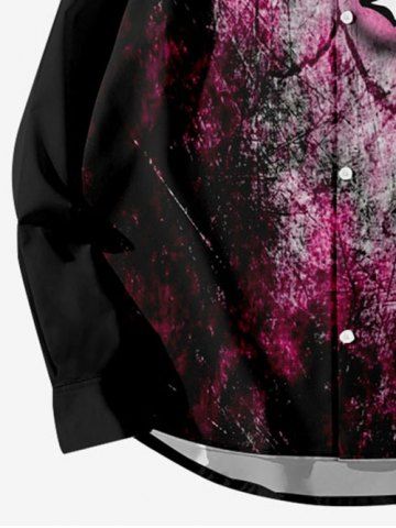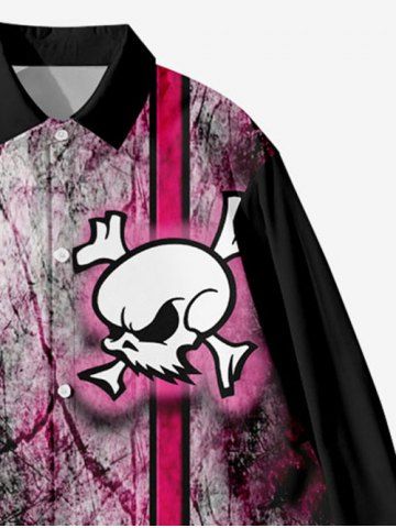 Plus Size Distressed Frayed Skull Striped Print Halloween Button Shirt For Men - Black - L