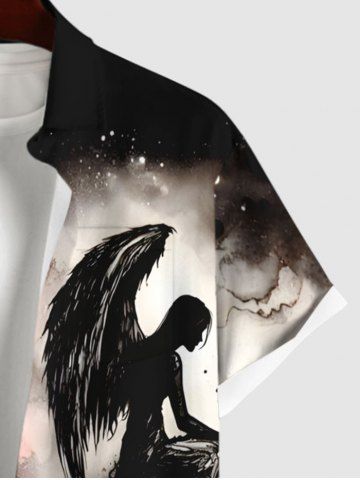 Plus Size Distressed Ombre Ink Painting Devil Angel Print Halloween Button Pocket Shirt For Men - Black - 4xl