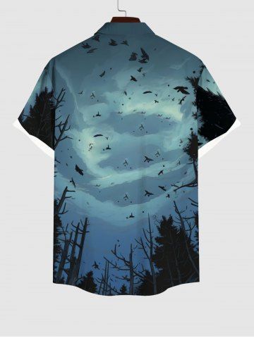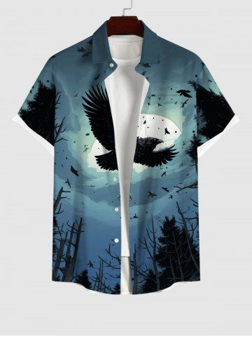 Plus Size Eagle Moon Ombre Sky Tree Forest Print Halloween Button Pocket Shirt For Men - Multi-a - S