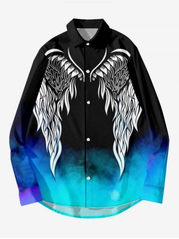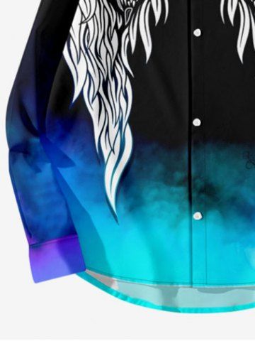 Men > Plus Size Feather Wing Ombre Cloud Print Halloween Button Shirt For Men