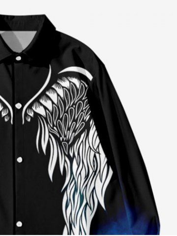 Plus Size Feather Wing Ombre Cloud Print Halloween Button Shirt For Men - Black - 2xl