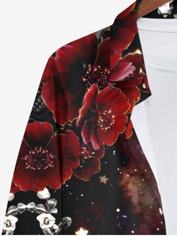 Plus Size Floral Bat Stars Galaxy Print Halloween Button Shirt For Men - Black - 7xl