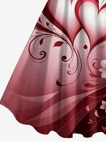 Men > Plus Size Flower Heart Print Valentines Ombre A Line Dress
