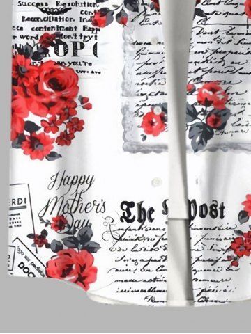 Plus Size Flower Newspaper Letters Print Valentines Button Pocket Shirt For Men - White - S