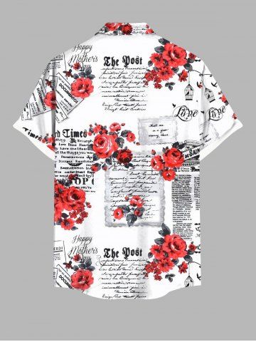 Plus Size Flower Newspaper Letters Print Valentines Button Pocket Shirt For Men - White - 4xl