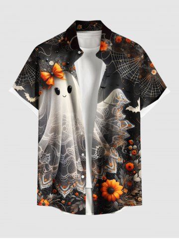 Plus Size Flower Spider Web Ghost Bride Print Halloween Ombre Button Pocket Shirt For Men - Black - M