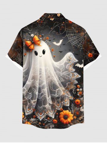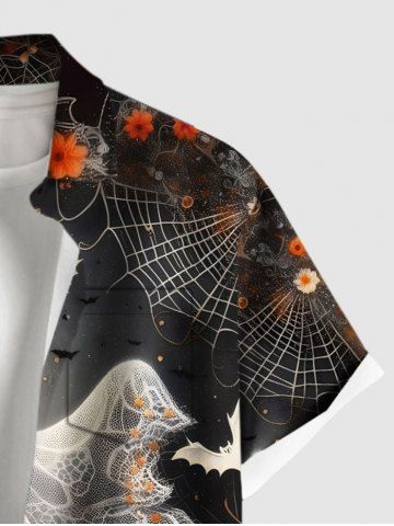 Plus Size Flower Spider Web Ghost Bride Print Halloween Ombre Button Pocket Shirt For Men - Black - L