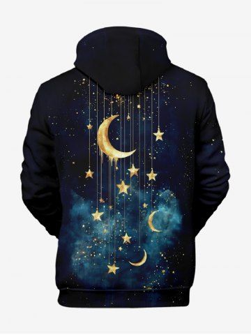 Men's Clothing > Plus Size Galaxy Moon Star Tassel Print Drawstring Pockets Hoodie For Men