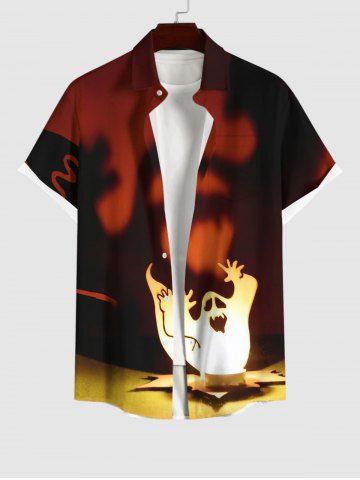 Men > Plus Size Ghost Fire Flame Print Halloween Ombre Button Pocket Shirt For Men