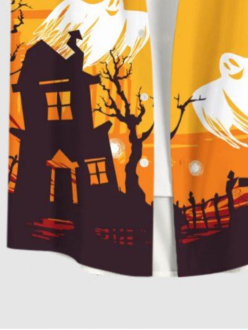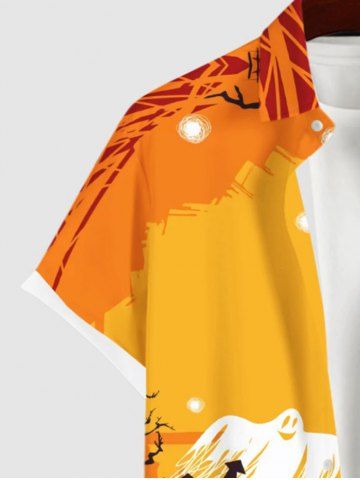 Plus Size Ghost Swallow Castle Tree Cross Skull Print Halloween Button Pocket Shirt For Men - Multi-a - Xl