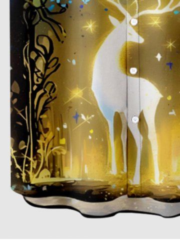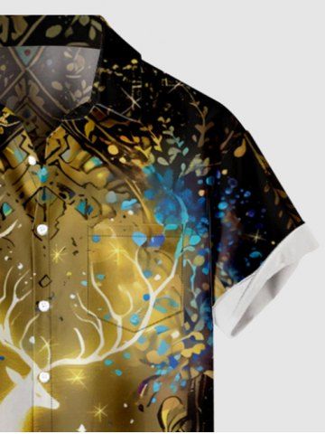 Plus Size Glitter Christmas Elk Branch Leaf Print Button Pocket Shirt For Men - Multi-a - S