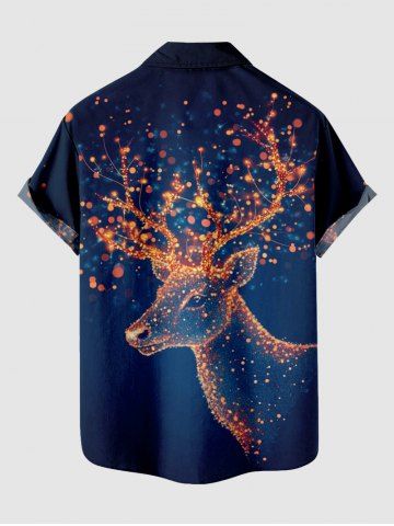 Plus Size Glitter Christmas Elk Light Spot Print Ombre Button Pocket Shirt For Men - Navy Blue - M