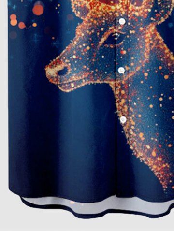 Plus Size Glitter Christmas Elk Light Spot Print Ombre Button Pocket Shirt For Men - Navy Blue - 2xl