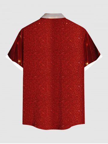Plus Size Glitter Christmas Light 3D Costume Print Button Pocket Shirt For Men - Red - 3xl