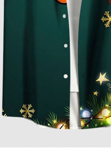 Plus Size Glitter Christmas Light Ball Elk Print Button Pocket Shirt For Men - Green - 2xl