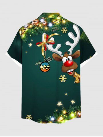 Plus Size Glitter Christmas Light Ball Elk Print Button Pocket Shirt For Men - Green - 4xl