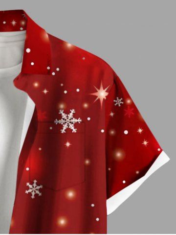Plus Size Glitter Christmas Snowflake Ball Print Button Pocket Shirt For Men - Red - M
