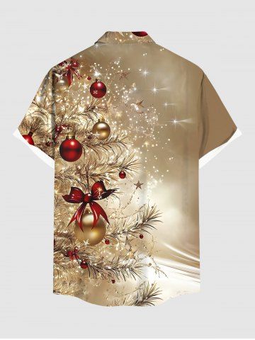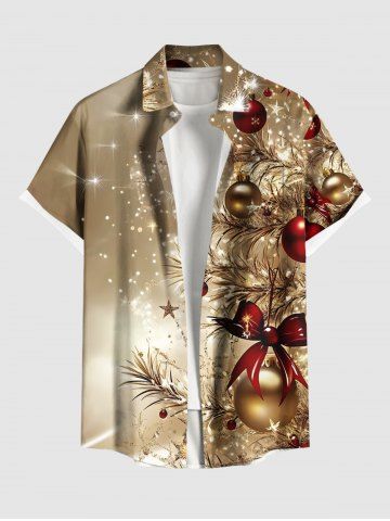 Plus Size Glitter Christmas Tree Ball Bowknot Print Button Pocket Shirt For Men - Light Brown - Xl