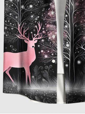 Men's Clothing > Plus Size Glitter Christmas Tree Elk Ball Snowflake Print Button Pocket Shirt For Men