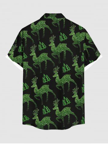 Plus Size Glitter Christmas Tree Elk Print Button Pocket Shirt For Men - Black - Xl