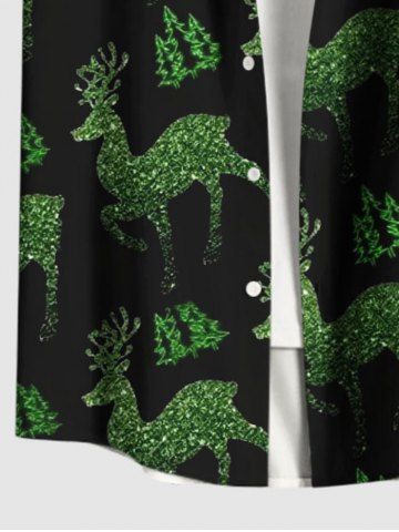 Plus Size Glitter Christmas Tree Elk Print Button Pocket Shirt For Men - Black - 2xl