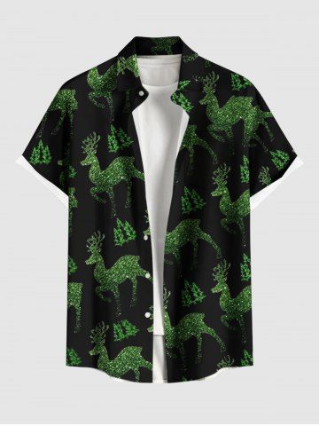 Plus Size Glitter Christmas Tree Elk Print Button Pocket Shirt For Men - Black - 5xl
