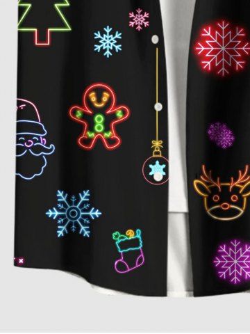 Plus Size Glitter Christmas Tree Elk Snowflake Gingerbread Print Button Pocket Shirt For Men - Black - S