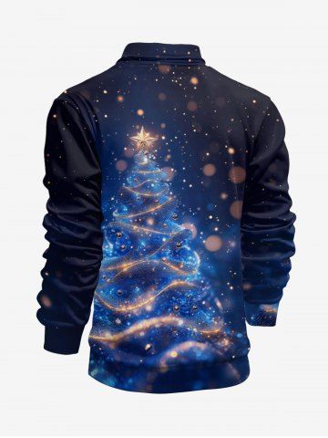 Plus Size Glitter Christmas Tree Galaxy Print Half Zipper Long Sleeves Polo Shirt For Men - Black - 3xl