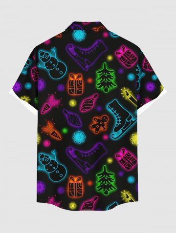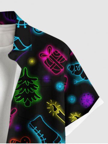 Plus Size Glitter Christmas Tree Light Boots Snowman Print Button Pocket Shirt For Men - Black - S