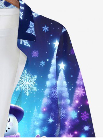 Plus Size Glitter Christmas Tree Snowflake Snowman Print Ombre Long Sleeves Shirt For Men - Blue - 8xl