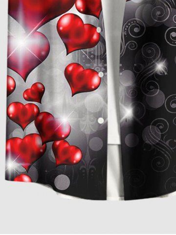 Plus Size Glitter Heart Balloon Print Valentines Button Pocket Shirt For Men - Black - L