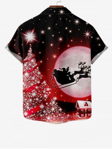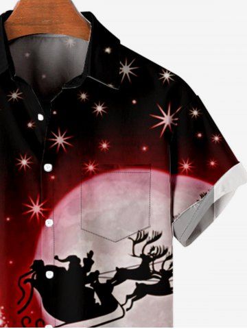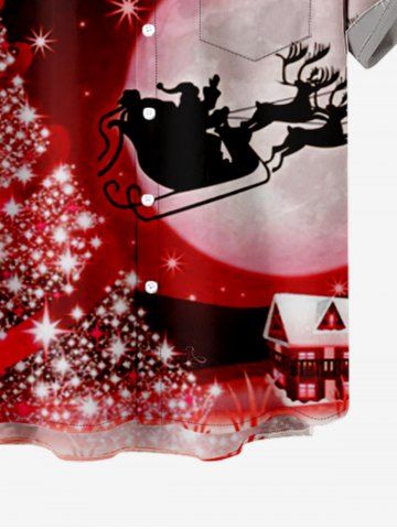 Plus Size Glitter Sparkling Christmas Tree Star Ombre Galaxy Moon Elk Santa Claus Print Button Pocket Shirt For Men - Red - 2xl