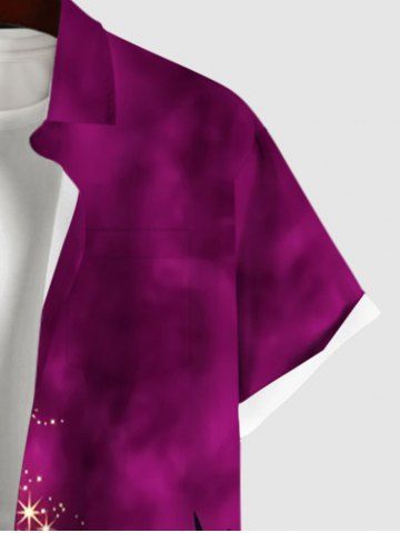 Plus Size Glitter Sparkling Stars Christmas Tree Snowflake Tie Dye Ombre Print Shirt For Men - Purple - 4xl